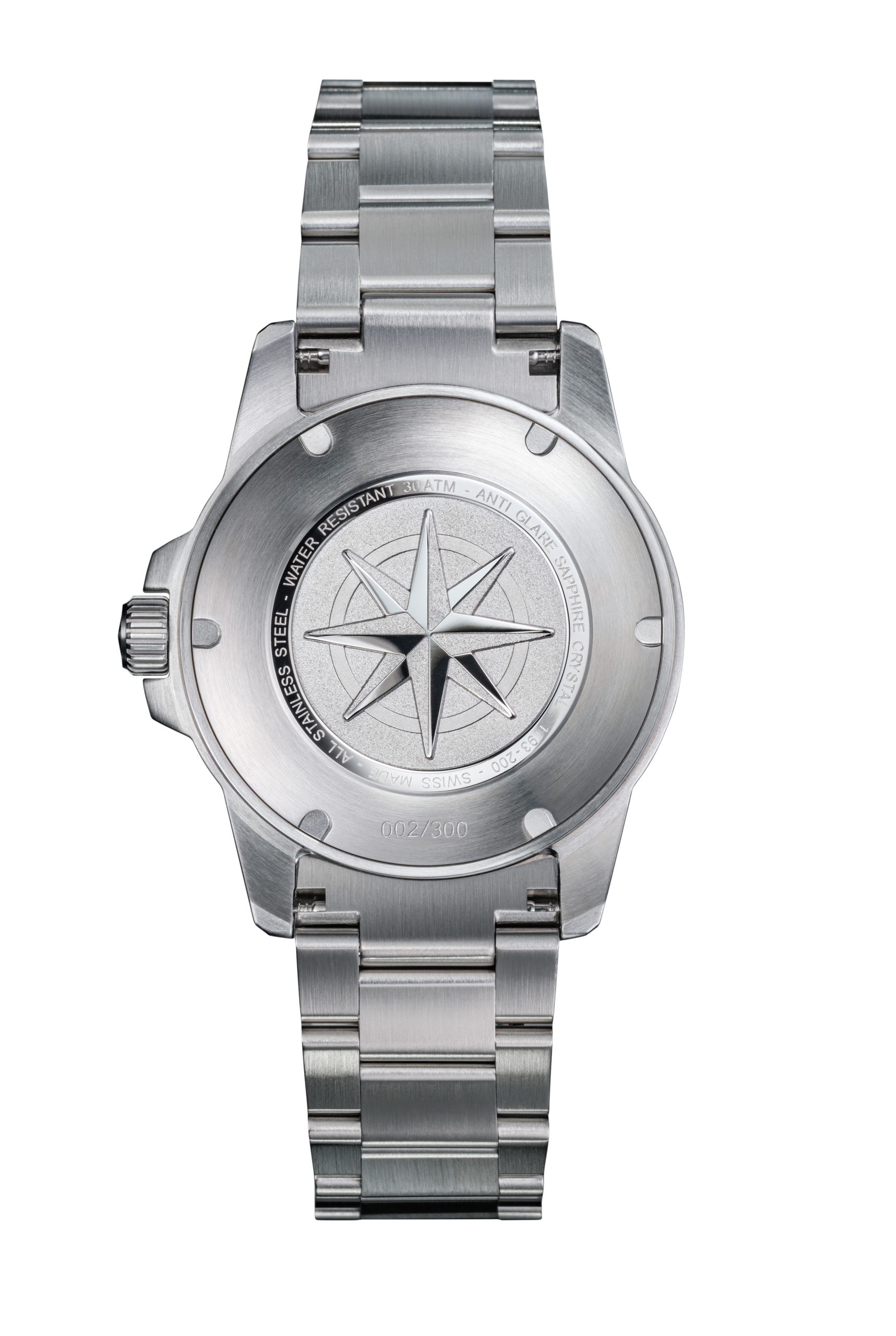 Con su diseño impactante, sus características profesionales y su esfera semitransparente de piel de tiburón, combina el arte de la relojería suiza con una clara declaración de intenciones a favor de la protección de los ecosistemas marinos. Cada reloj apoya activamente los proyectos de Shark Angels y deja una huella imborrable en la muñeca.